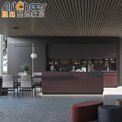 ভালো দাম দ্বীপ টেবিল এবং E1 গ্রেড উপাদান সঙ্গে সমসাময়িক নকশা কাঠের রান্নাঘর ক্যাবিনেট অনলাইন